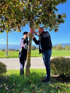 V ta namen je tudi letos Občina Žirovnica v sodelovanju z Ljudsko univerzo Jesenice in Združenjem Europa Donna Slovenija, začetek rožnatega meseca obeležila s simboličnim dejanjem – rožnato pentljo, ki jo najdete na vhodu v občino, kjer so gredice s cvetjem, ter rožnatim šalom, s katerim sta župan Leopold Pogačar in članica upravnega odbora Združenja Europa Donna Slovenija Rina Klinar odela dve drevesi pred občinsko stavbo.