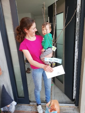 Tudi letos smo podarili sadike (hrušk) 38 otrokom rojenim v letu 2020 na način, ki je prilagojen splošnim priporočilom v zvezi ukrepov za preprečevanje širjenja COVID-19. S pomočjo podjetja Zvonček – s, cvetličarstvo in trgovina, d.o.o., smo 14.4. vse sadike dostavili otrokom na dom. Žal nam je, da se tudi letos nismo mogli osebno srečati.