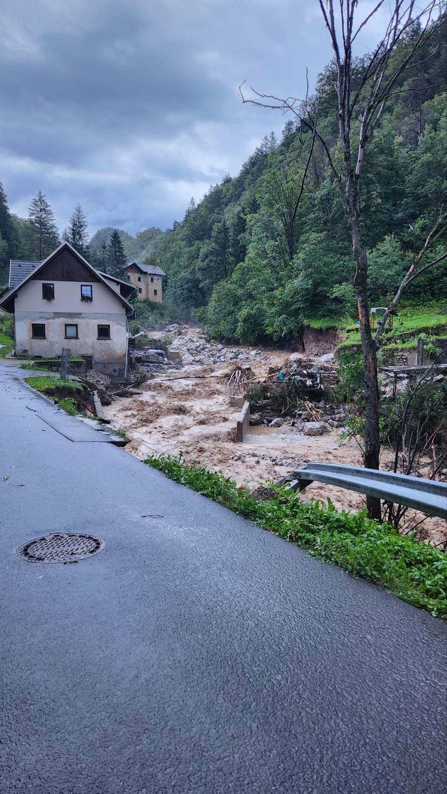 Hudo deževje je škodo povzročilo tudi v naši občini. Trenutno je stanje najhujše na območju naselja Moste v Grabnu, kjer je gibanje zaradi naraslega potoka Završnica smrtno nevarno, cesta od železniškega nadvoza do odcepa v Završnico pa je neprevozna in zaprta.