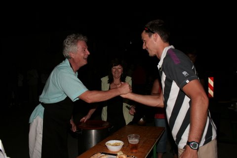V kratkem nagovoru je veslače pozdravil predstavnik vasi g. Janez Šebat in župan občine Žirovnica g. Leopold Pogačar, ki je veslačem ob tej priložnosti izročil tudi skromna darila. V njihovo čast jim je zaigrala tudi godba na pihala iz Gorij. Za dobro domačo juho, ki so si jo zaželeli veslači, pojedli pa vsi zbrani, je poskrbel Igor Čarni skupaj s Cvetom Pirihom in Bogom Legatom.