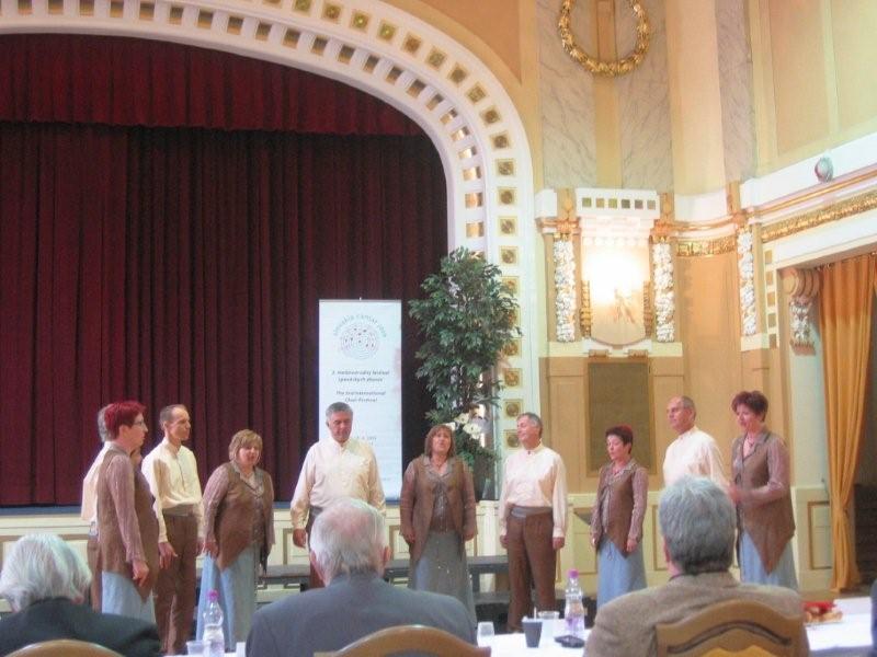 Pevska trema je malo popustila, že smo hiteli na naslednji nastop udeležencev festivala, v cerkev, imenovana Hudobná sieň Klárisky, popoldan pa zaključili z ogledom mestnih znamenitosti. Sobotno jutro je bilo sončno in toplo. Še zadnje vaje ob 11.30 uri, spet registracija pred dvorano Moyzesova sieň in točno ob 13.54 uri smo zopet stopili na oder ter izvedli program za kategorijo »Ljudska pesem a cappella«. Po oceni žirije, ki so jo sestavljali Doc.Mgr.Jan Maria Dobrodinský, Prof.PaedDr.Jiři Kolář in doc.Ing.Vlastislav Novák iz Češke, iz Slovaške Dr. Milan Kolena in doc.Mgr.Art. Ondrej Šaray, iz Litve Doc.Rolandas Daugėla ter Prof. Vytautas Miskinis in iz Polske Prof. Czeslaw Freund, je bil seštevek 23,96 točk, kar je pomenilo srebrno priznanje. Pevci in umetniška vodja Irena Kosmač smo na priznanji zelo ponosni. Hkrati pa smo veseli, da se lahko v tako številni konkurenci mladih in šolanih glasov še vedno držimo nekje v »zlati« sredini.