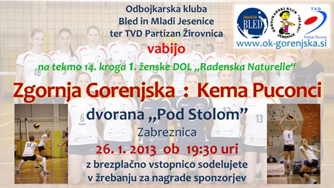 Vabilo na zadnjo tekmo združene gorenjske ekipe v prvem delu prve ženske odbojkarske lige