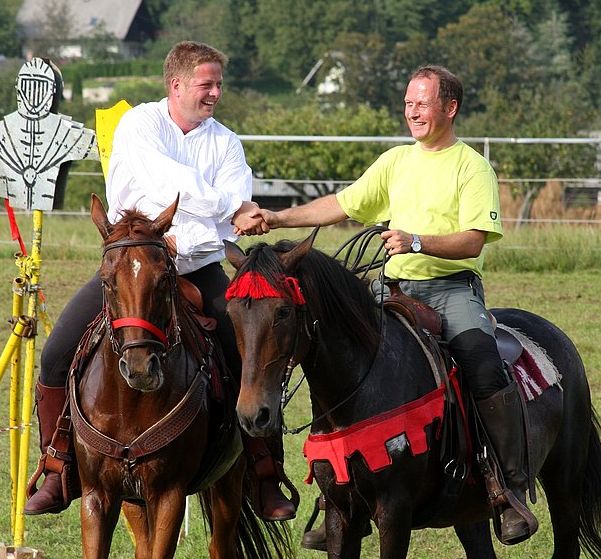 V nadaljevanju je “viteško” čast občine branil župan, Leopold POGAČAR, katerega je izzval župan Gorij, Peter TORKAR, v viteških igrah na konjih. Tu je domačemu županu zmanjkal za zmago “dobesedno en dober met sekire”.
