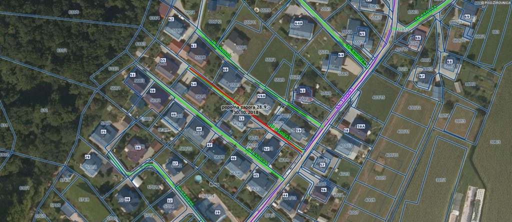 Gorenjska gradbena družba d.d., Jezerska cesta 20, 4000 Kranj, je dne 26.09.2018 zaradi dokončanja del pri gradnji kanalizacijskega omrežja in izvedbi rekonstrukcije vodovoda v naselju Breg zaprosila za podaljšanje dovoljenja za zaporo dela kategorizirane občinske ceste s parc. št. 1210/2 in 1189/1 obe k.o. Žirovnica z oznako LC 150061 in hkrati tudi vseh pripadajočih javnih poti ob LC 150061, od petka, dne 28.09.2018, do torka, dne 30.10.2018. Zaradi dokončanja del (nasipanja bankin, izvedbe talnih označb, idr.) potrebujejo na navedenih občinskih cestah delno zaporo. Ob enem so zaprosili za popolno zaporo kategorizirane občinske ceste z oznako JP 650023 (Breg 52 – Breg 55), od petka, dne 28.09.2018, do torka, dne 30.10.2018, saj bodo uredili cestišče.