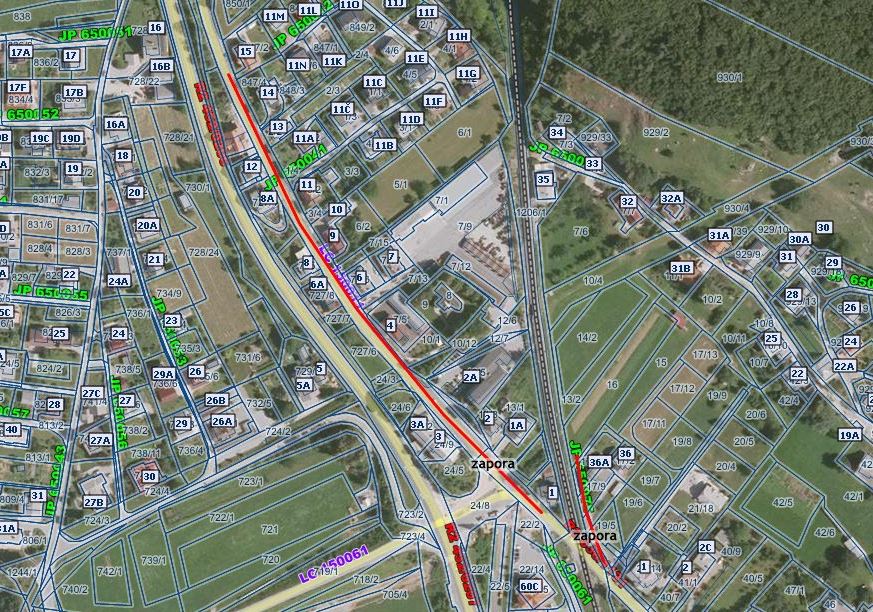Popolna zapora ceste LC 150011 zaradi izredne globine izkopa (cca 5,0 m) bo trajala v času gradbenih del vsak dan od 0.00 do 24.00 ure, popolna zapora ceste z oznako JP 650075 pa od 7.00 do 17.00 ure.