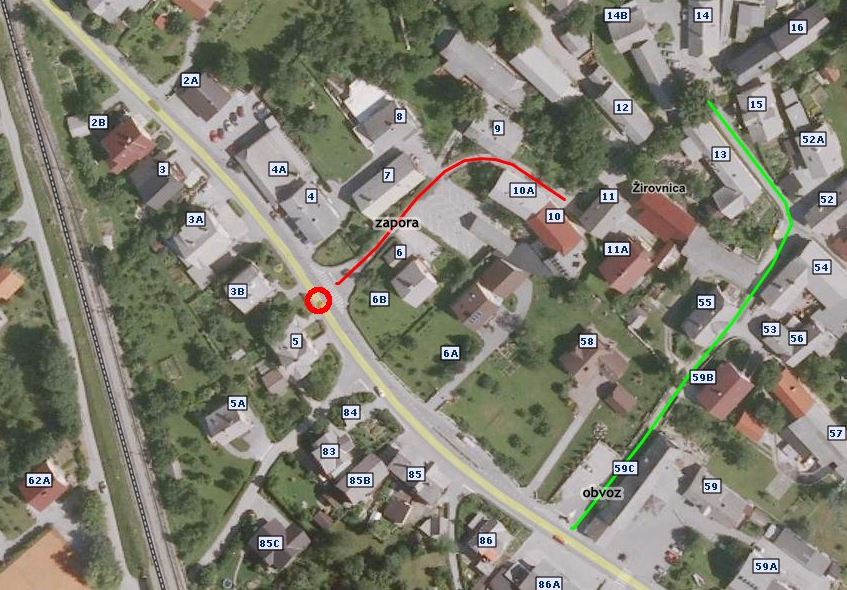 Zapora ceste v Žirovnici-obvestilo