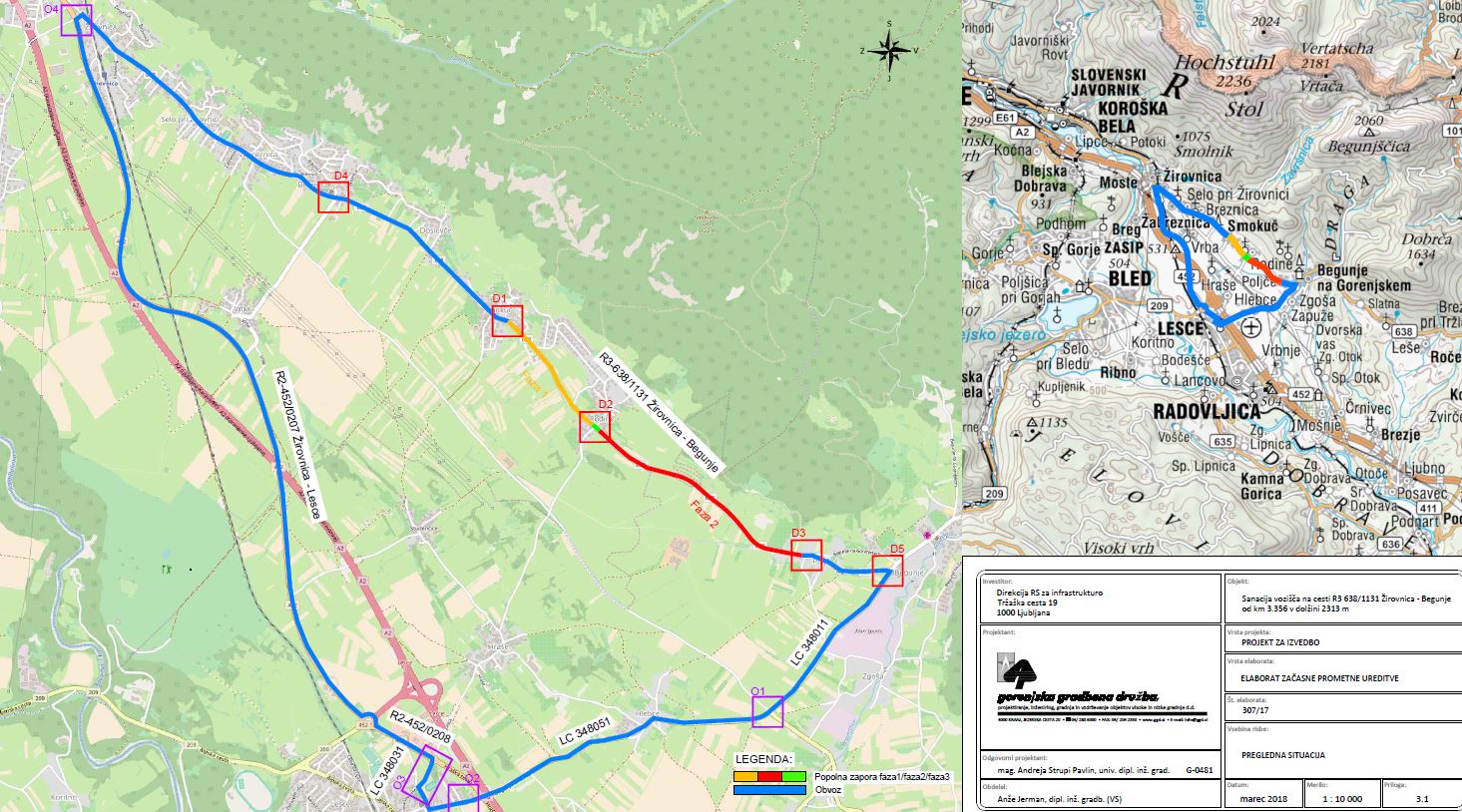 Direkcija republike Slovenije za infrastrukturo bo z izbranim izvajalcem CP Kranj izvajala sanacijo vozišča na cesti R3 638/1131 Žirovnica – Begunje med naseljema Smokuč in Rodine (faza 1), v času med ponedeljkom, dne 19.03.2018, in ponedeljkom, dne 30.04.2018, zaradi tega so potrebne popolne zapore nekaterih kategoriziranih občinskih cest z oznakami: