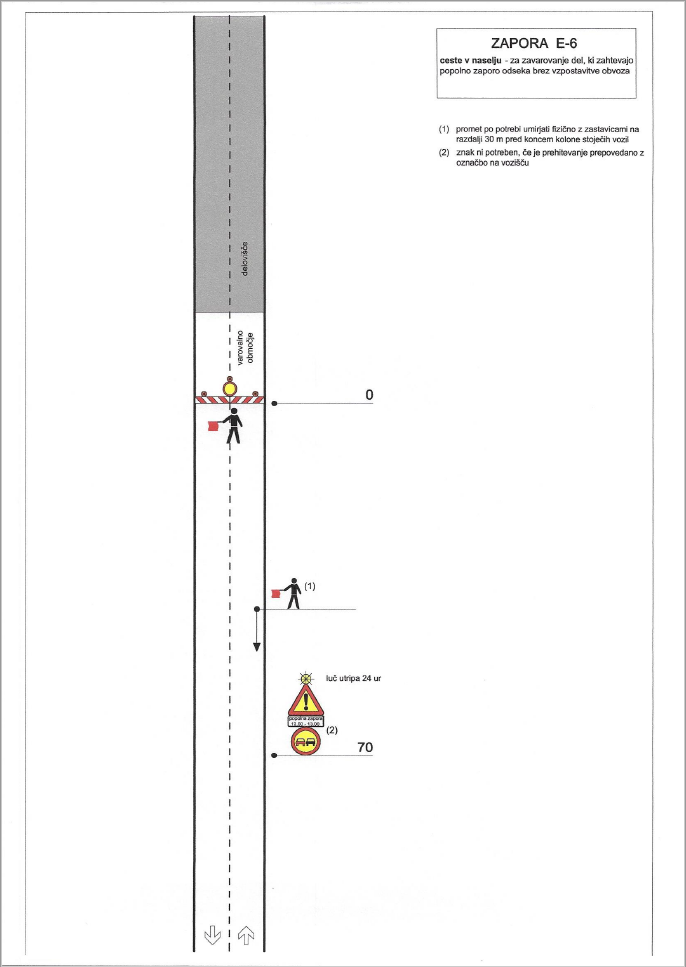 - zapora mora biti zavarovana, dobro vidna in ustrezno označena ter ob slabi vidljivosti predpisano osvetljena, vse v skladu s Pravilnikom o zaporah na cestah (Ur. list RS, 4/16);