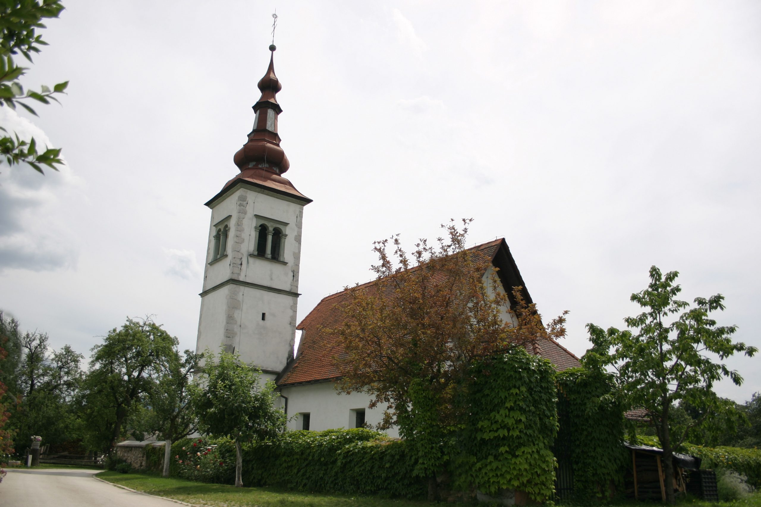 Cerkev je bila prvotno posvečena sv. Rupertu in se prvič omenja l. 1436 v celjski fevdalni knjigi, l.1458 pa kot radovljiška podružnica v matrikuli. V osnovi je romanska. Na prehodu iz ladje v prezbiterij se verjetno skrivajo temelji polkrožne apside. V gotiki so ladji pozidali ožji prezbiterij. Kamnit, gotsko oblikovan slavolok, je pod beležem slikan. Lopa je zidana in ima lesen strop. V njej je prižnica iz peščenjaka.