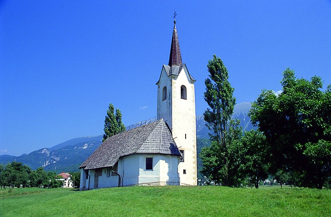 Podružnična cerkev sv. Marka se kot podružnica prvič omenja v radovljiški župnijski matrikuli iz I. 1468. Ima še ravno krito romansko ladjo in zvezdasto obokan prezbiterij v gotski tradiciji. Na romansko osnovo kažeta tudi nizek polkrožen slavolok in okence na južni steni ladje. Zvonik je bil zgrajen sočasno s prezbiterijem. Pred vhodom je baročna lopa. Cerkev je bila v srednjem veku večkrat poslikana, tako zunaj kot znotraj. V cerkveni notranjosti in na zunanjščini so ohranjene gotske freske iz 15. in prvih desetletij 16. stol. Okoli I. 1420 je v romanski apsidi in na ladijski slavoločni steni slikal neki furlansko izšolani slikar. Na temenu loka znotraj slavoločne stene se je ohranil zgornji del večje kompozicije Kristusa v mavrični gloriji, obdanega s simboli evangelistov. V ostenju slavoloka je lik apostola z vrezanim nimbom, ki je ostal edini od dvanajsterih, ki so bili nekoč razvrščeni po steni.