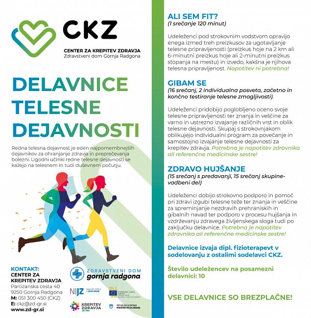 Brezplačni programi za krepitev zdravja in delavnice Centra za krepitev zdravja Zdravstvenega doma Gornja Radgona