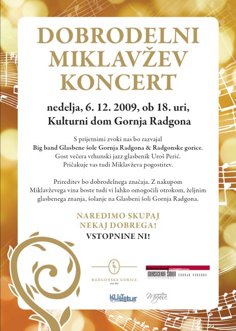 DOBRODELNI MIKLAVŽEV KONCERT bo v nedeljo, 6. 12. 2009, ob 18. uri, v Kulturnem domu Gornja Radgona.