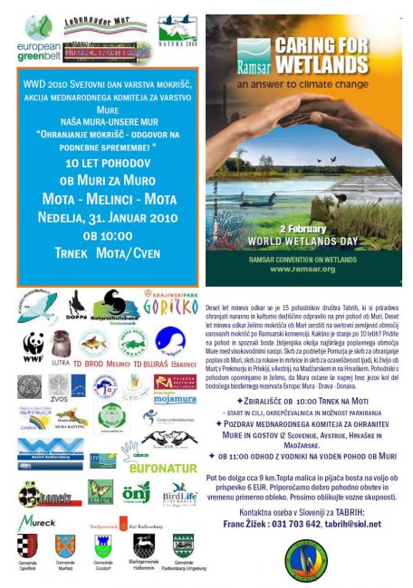 Pohod ob Muri ob Svetovnem dnevu varstva mokrišč, akcija Mednarodnega komiteja za varstvo Mure - 31. januarja 2010