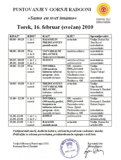 Pustovanje na Osnovni šoli Gornja Radgona - v torek, 16. februarja 2010 v Gornji Radgoni