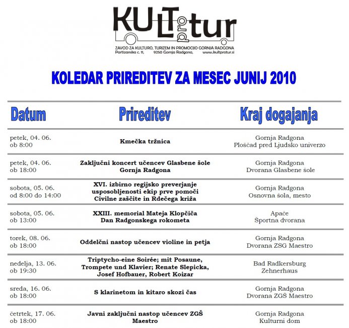 Koledar prireditev v mesecu juniju 2010 (PDF)