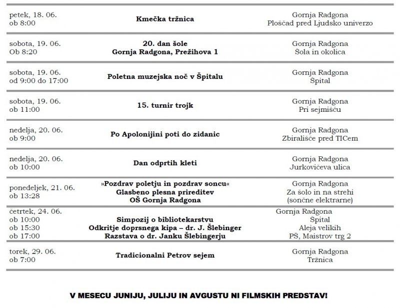 Prireditve, ki se bodo v mesecu juniju 2010 odvijale v občini Gornja Radgona – razvidno iz priponke spodaj: