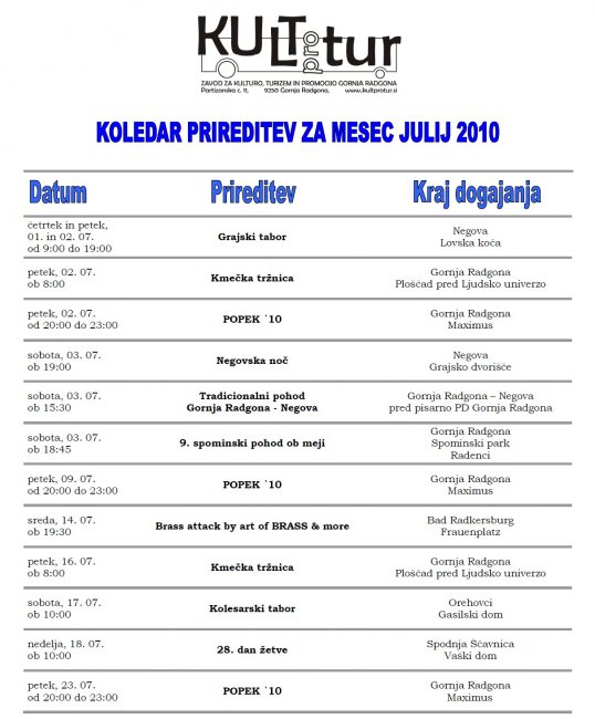 Koledar prireditev v mesecu juliju 2010 (PDF)