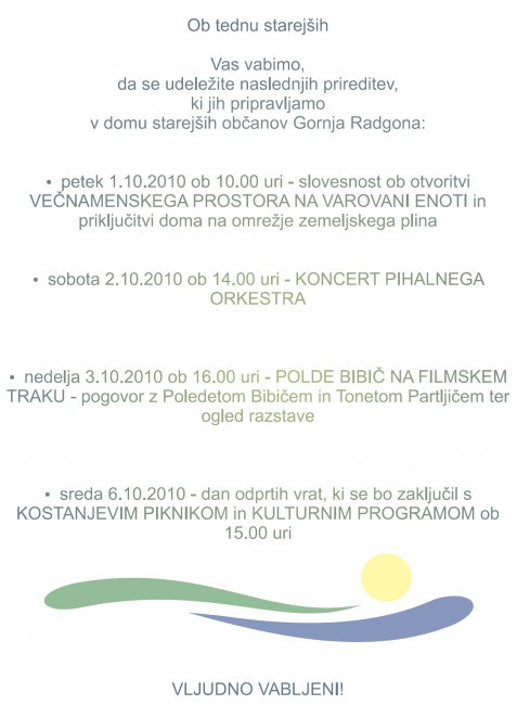 Prireditve ob tednu starejših - od 1. do 6. oktobra 2010 v Domu starejših občanov Gornja Radgona