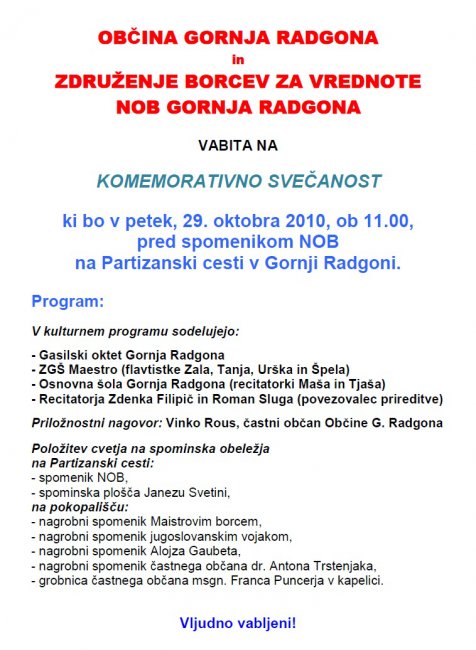 KOMEMORATIVNA SVEČANOST - 29. oktobra 2010 pred spomenikom NOB v Gornji Radgoni