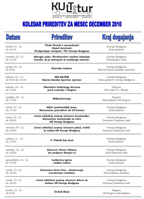 Koledar prireditev v mesecu decembru 2010 (PDF)