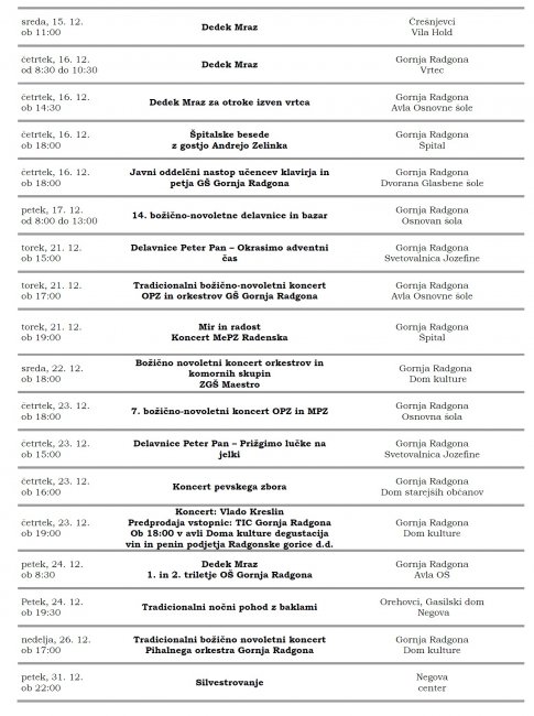 Koledar prireditev v veselem mesecu decembru 2010