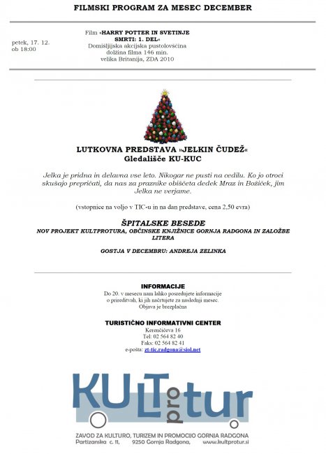 Prireditve, ki se bodo v veselem mesecu decembru 2010 odvijale v občini Gornja Radgona in filmski program kina v Gornji Radgoni, so razvidne iz priponke spodaj: