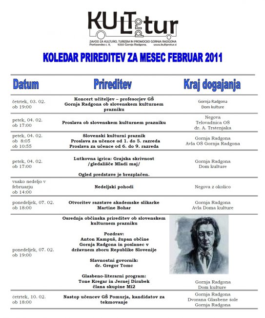 Koledar prireditev v mesecu februarju 2011 (PDF)