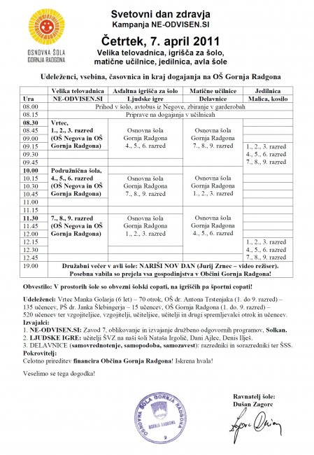 Svetovni dan zdravja - Kampanja NE-ODVISEN.SI - 7. aprila 2011 na OŠ Gornja Radgona