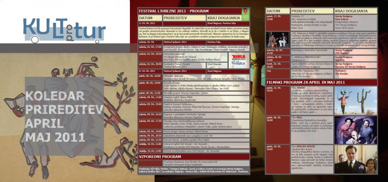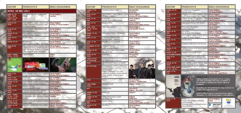 Koledar prireditev za mesec april in maj 2011 (PDF)