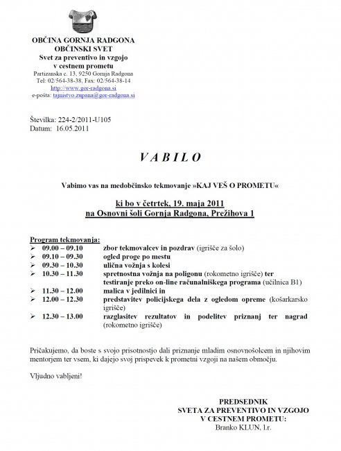 Rezultati medobčinskega tekmovanja (UE Gornja Radgona) KAJ VEŠ O PROMETU (PDF)