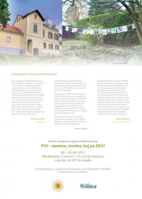Umetniška instalacija *PVC - umetno, modno, kaj pa EKO?* - med 2. in 5. junijem 2011 pred Vilo Korošec v Črešnjevcih