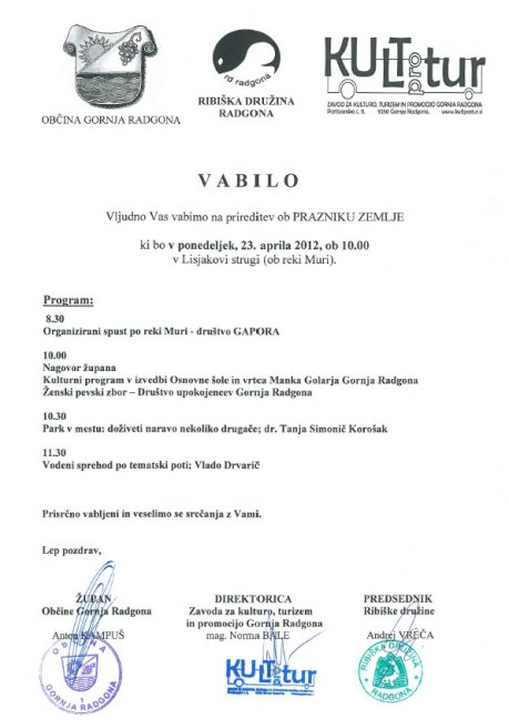 Prireditev ob PRAZNIKU ZEMLJE - 23. aprila 2012 v Lisjakovi strugi