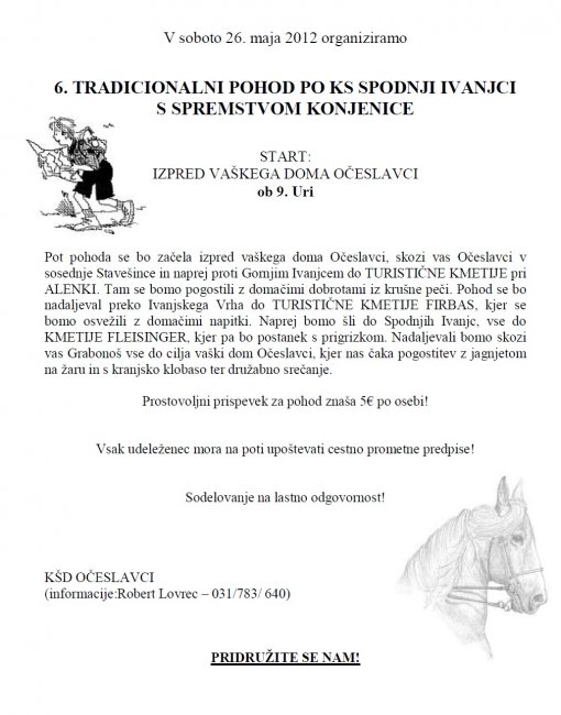 6. tradicionalni pohod po KS Spodnji Ivanjci s spremstvom konjenice - 26. maja 2012 s štartom v Očeslavcih
