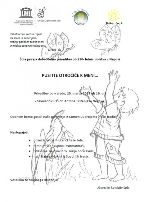 Dobrodelna prireditev ob 230-letnici šolstva v Negovi: PUSTITE OTROČIČE K MENI… - 20. marca 2013 v telovadnici OŠ dr. Antona Trstenjaka Negova