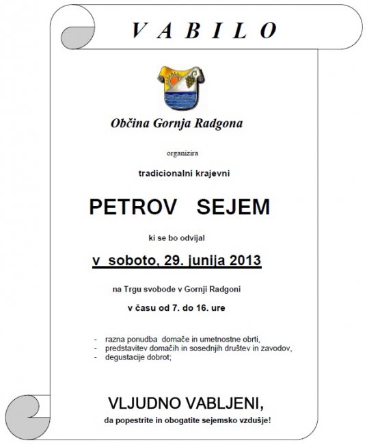 Tradicionalni krajevni PETROV SEJEM - 29. junija 2013 na Trgu svobode v Gornji Radgoni