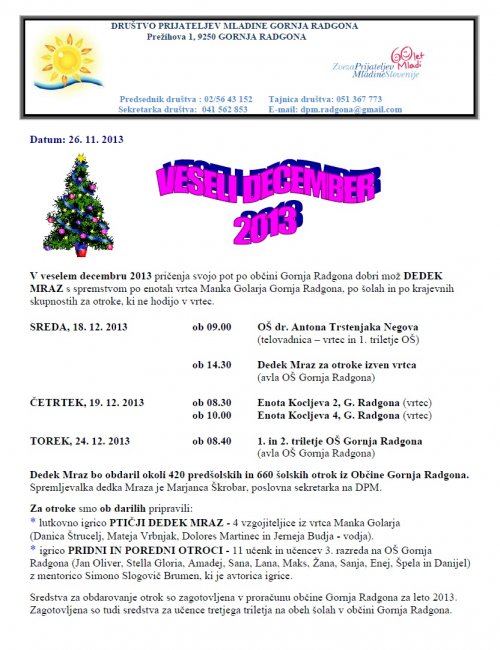 Veseli december 2013: urnik poti, ki jo po občini Gornja Radgona pričenja dobri mož DEDEK MRAZ s spremstvom – 18., 19. in 24. decembra 2013