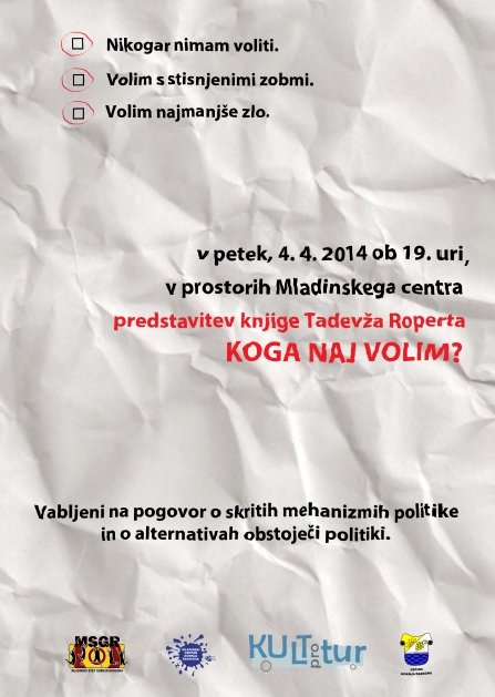 Predstavitev knjige Tadevža Roperta z naslovom KOGA NAJ VOLIM? - 4. aprila 2014 v Mladinskem centru Gornja Radgona