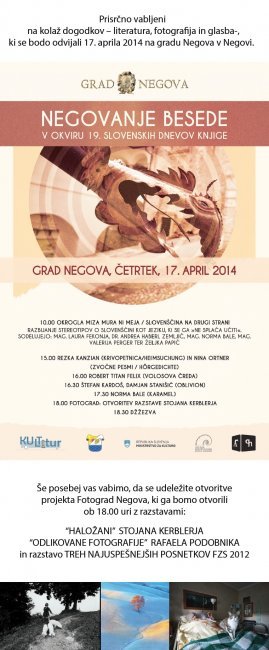 NEGOVANJE BESEDE, kolaž dogodkov v okviru 19. slovenskih dnevov knjige - 17. aprila 2014 na gradu Negova