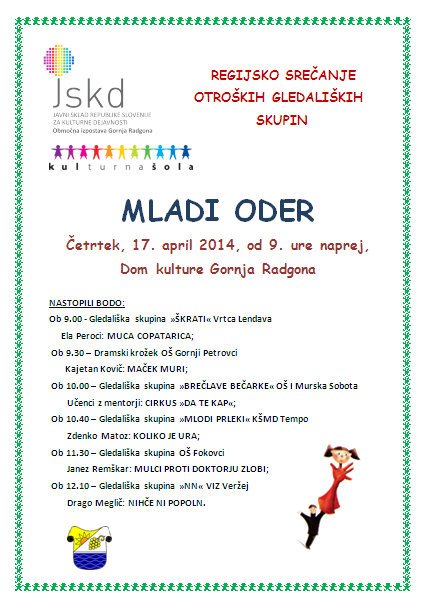 Regijsko srečanje otroških gledaliških skupin iz Pomurja "MLADI ODER" - 17. aprila 2014 v Domu kulture Gornja Radgona