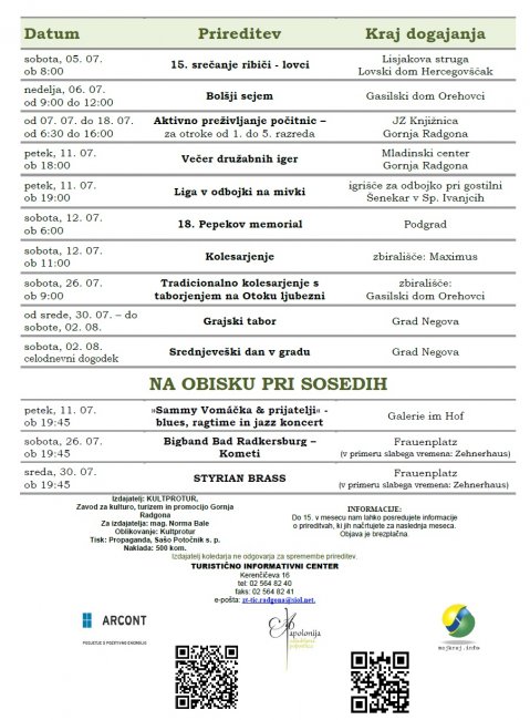 Koledar prireditev v tiskani obliki se lahko dobi v TIC-u, na občini, v Domu kulture in na drugih mestih v Gornji Radgoni.