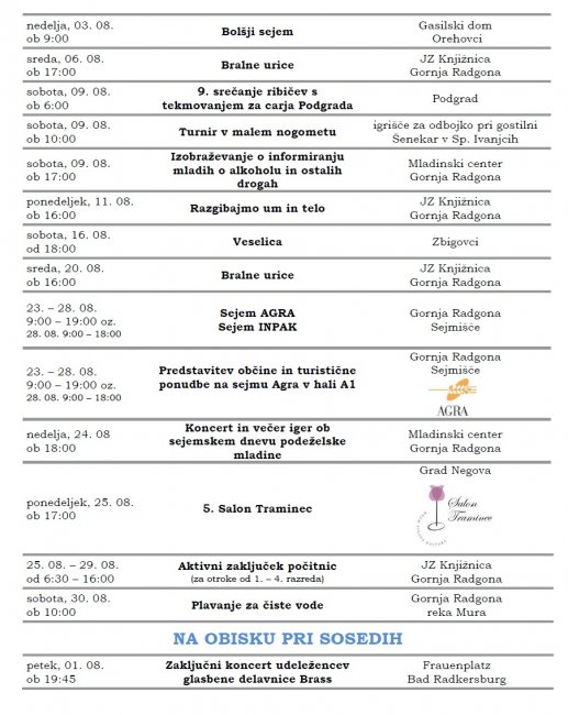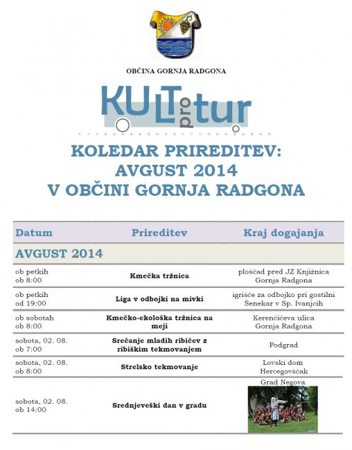 Prireditve, ki se bodo v mesecu avgustu 2014 odvijale v občini Gornja Radgona so razvidne iz priponke spodaj: