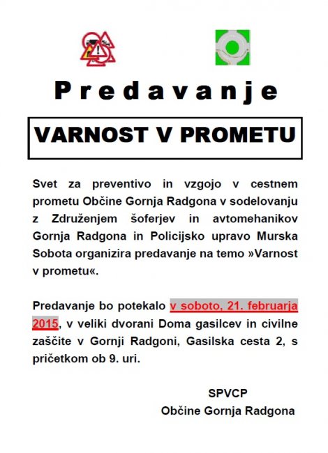 Predavanje na temo »Varnost v prometu« - 21. februarja 2015 v Gornji Radgoni