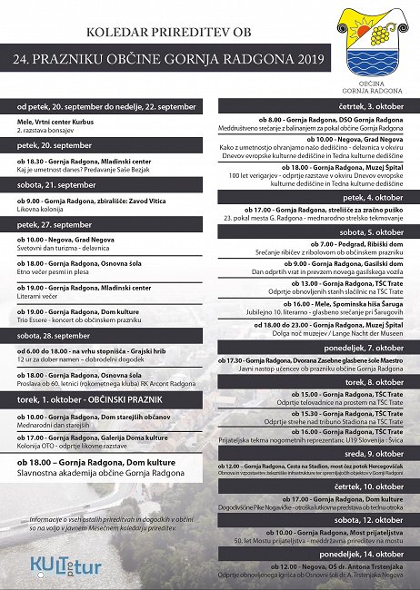 KOLEDAR PRIREDITEV ob 24. prazniku Občine Gornja Radgona (20. 9. - 14. 10. 2019)