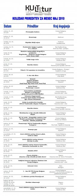 Koledar prireditev v mesecu maju 2010 (PDF)