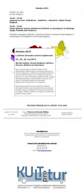 Koledar prireditev v mesecu maju 2010 in filmski program kina v Gornji Radgoni