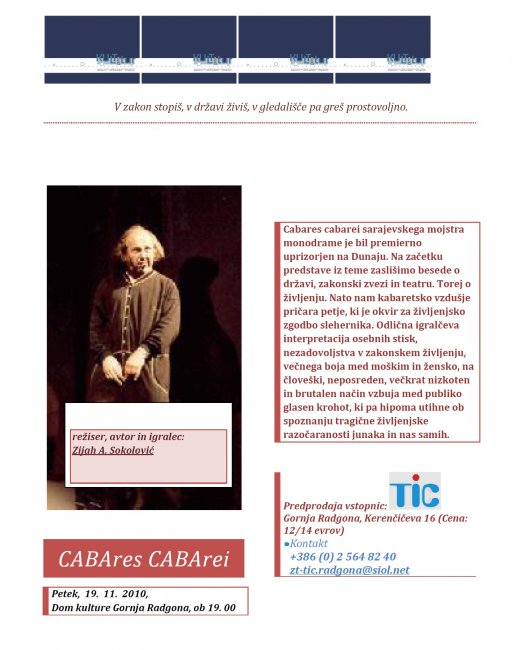 Življenjska komedija CABAres CABArei - avtor Zijah A. Sokolović - 19. novembra 2010 v Gornji Radgoni