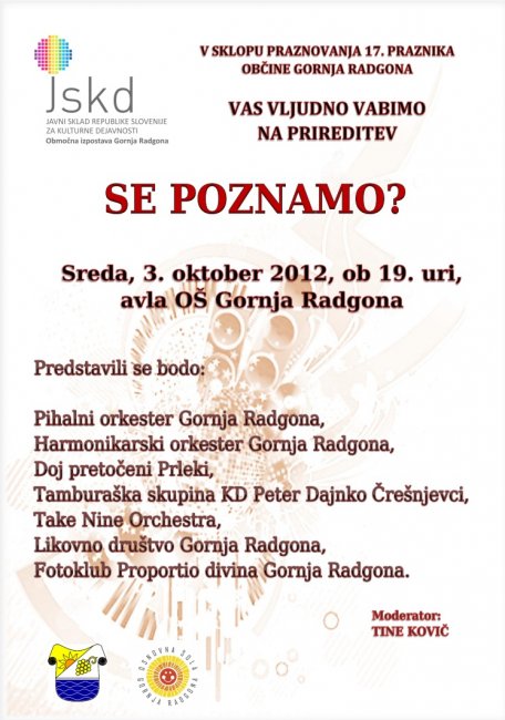 Glasbena prireditev SE POZNAMO? - 3. oktobra 2012 v avli OŠ Gornja Radgona