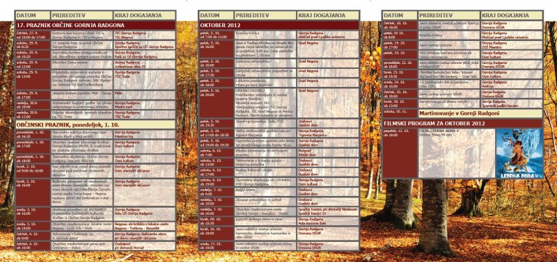 Prireditve, ki se bodo v mesecu septembru in oktobru 2012 odvijale v občini Gornja Radgona so razvidne iz priponke spodaj: