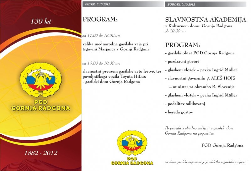 130 let PGD Gornja Radgona (program in slavnostna akademija) - 5. in 6. oktobra 2012 v Gornji Radgoni