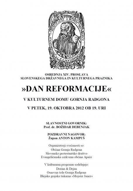 »DAN REFORMACIJE« - osrednja XIV. proslava slovenskega državnega in kulturnega praznika - 19. oktobra 2012 v Kulturnem domu Gornja Radgona